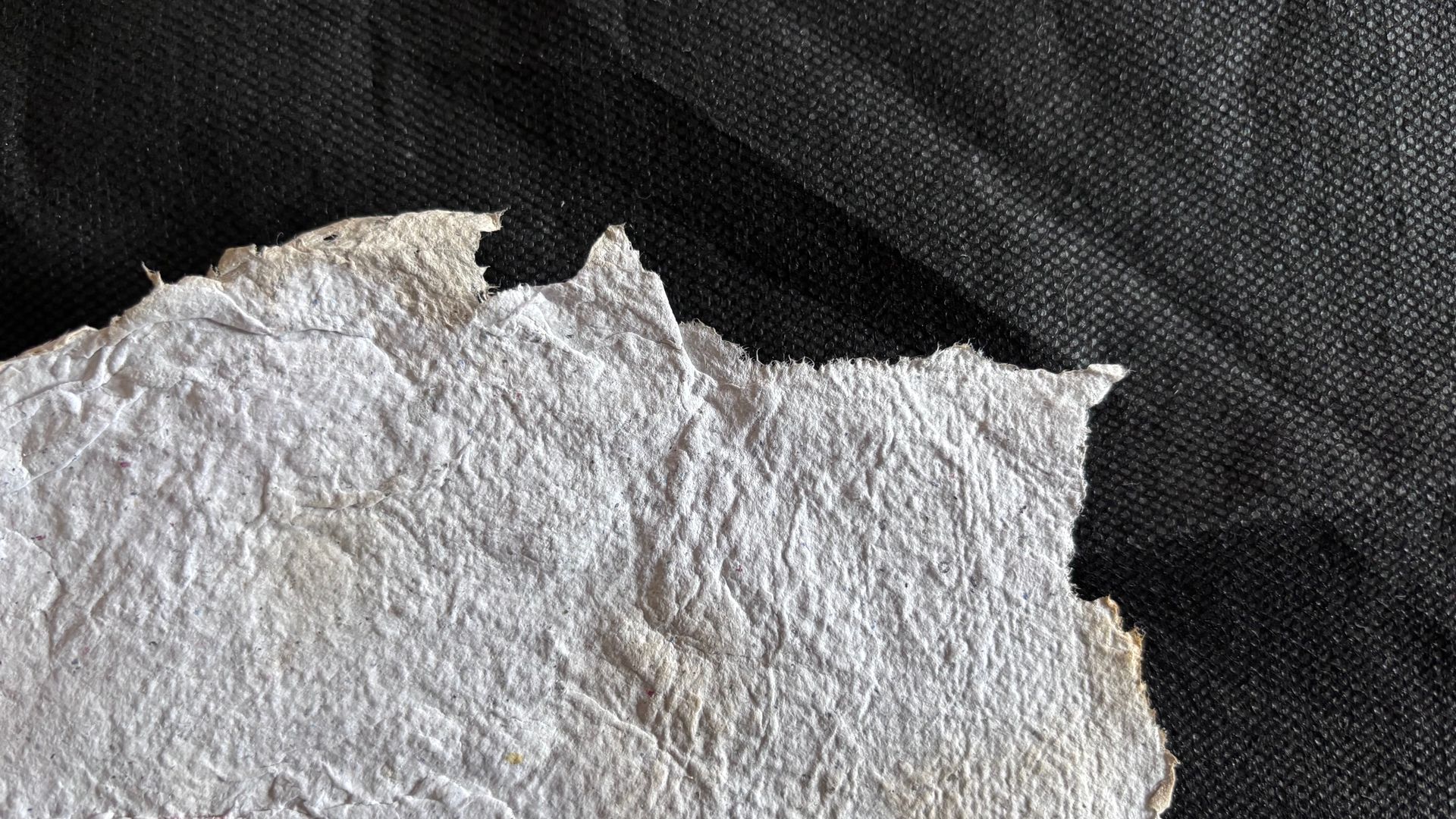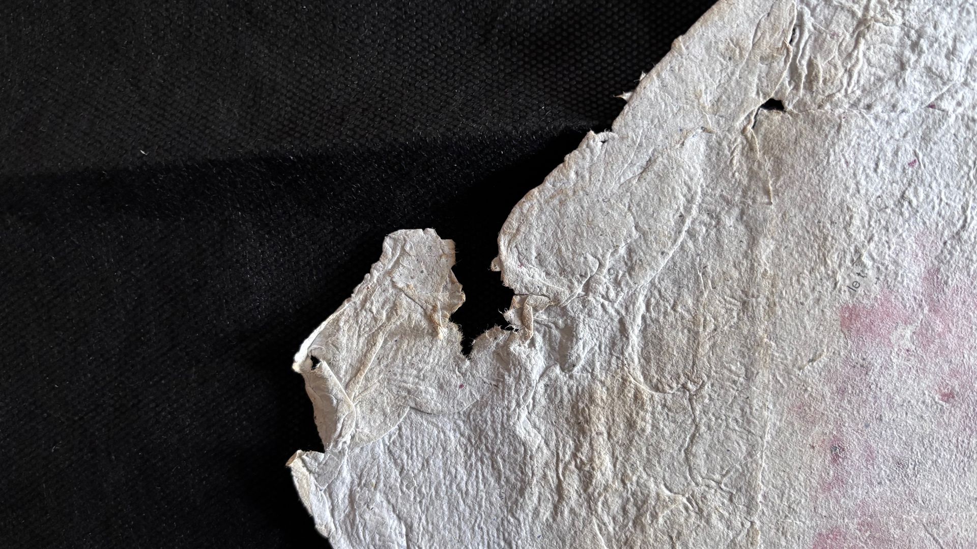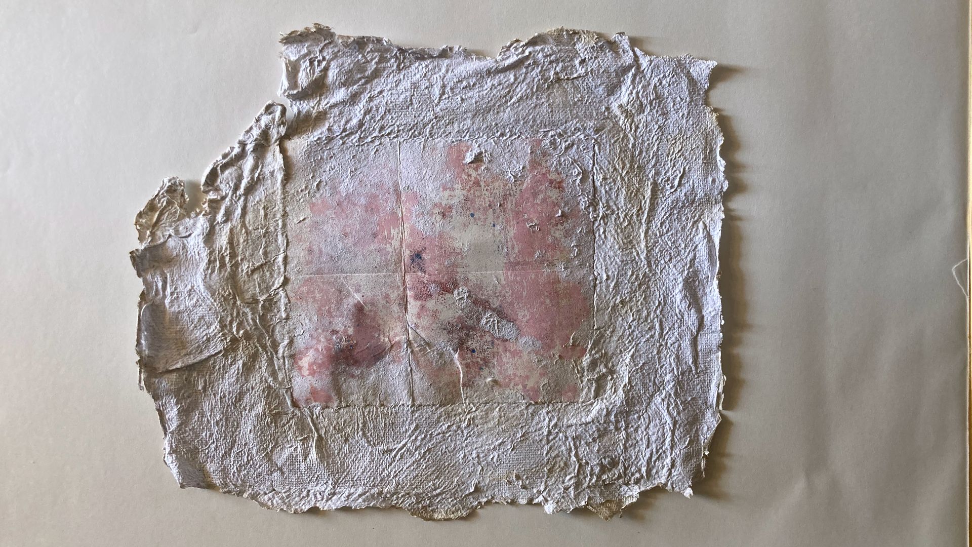 Monotype de 2024 sur papier fondu dans du papier issu des cours de mon fils cadet.