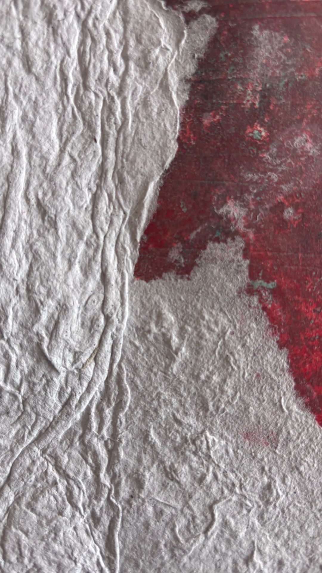Monotype de 2024 sur papier fondu dans du papier issu des cours de mon fils cadet.
