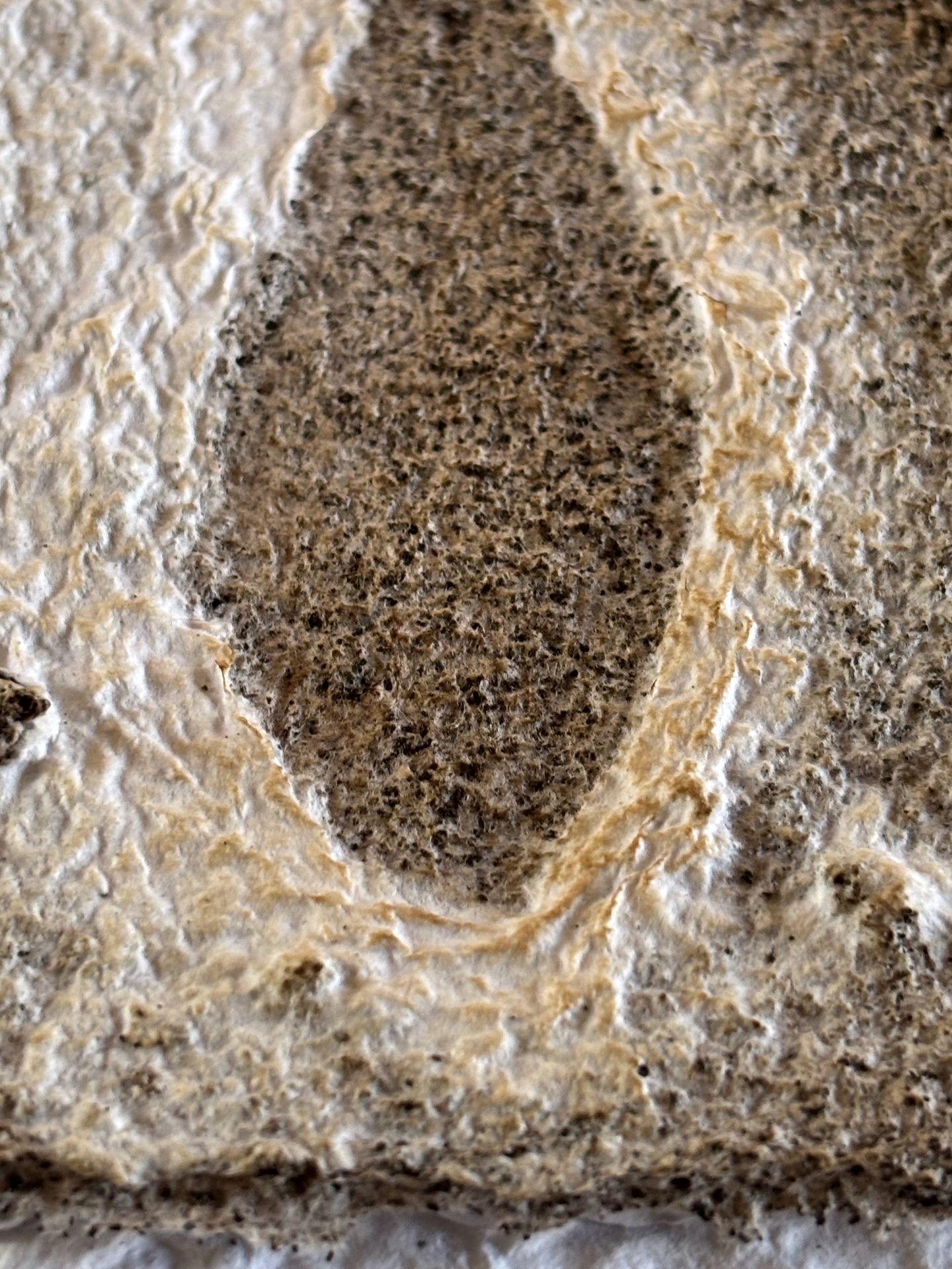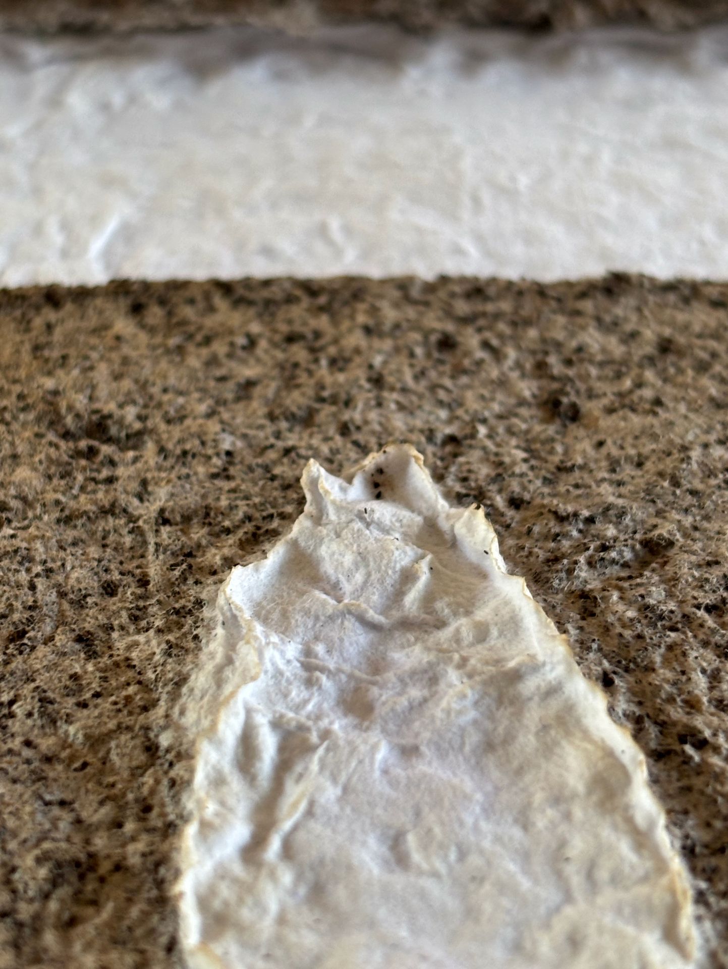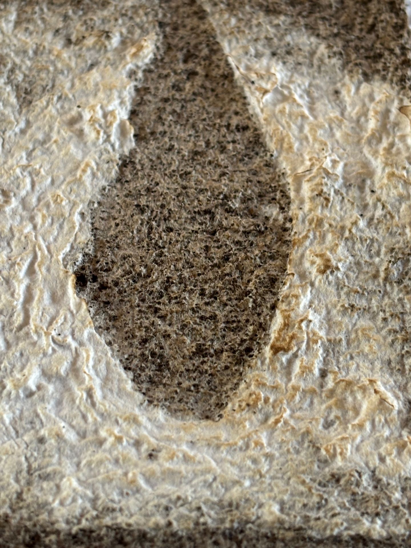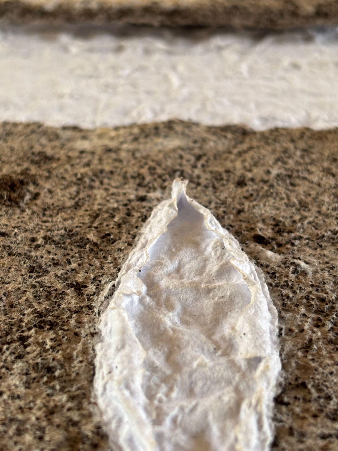Assemblages de papiers coulés faits de vieux magazines des années 1920 « Noël » trouvés au grenier et abîmés, des cours de mon fils cadet et d’encre rouge coulés dans du papier farci de café.